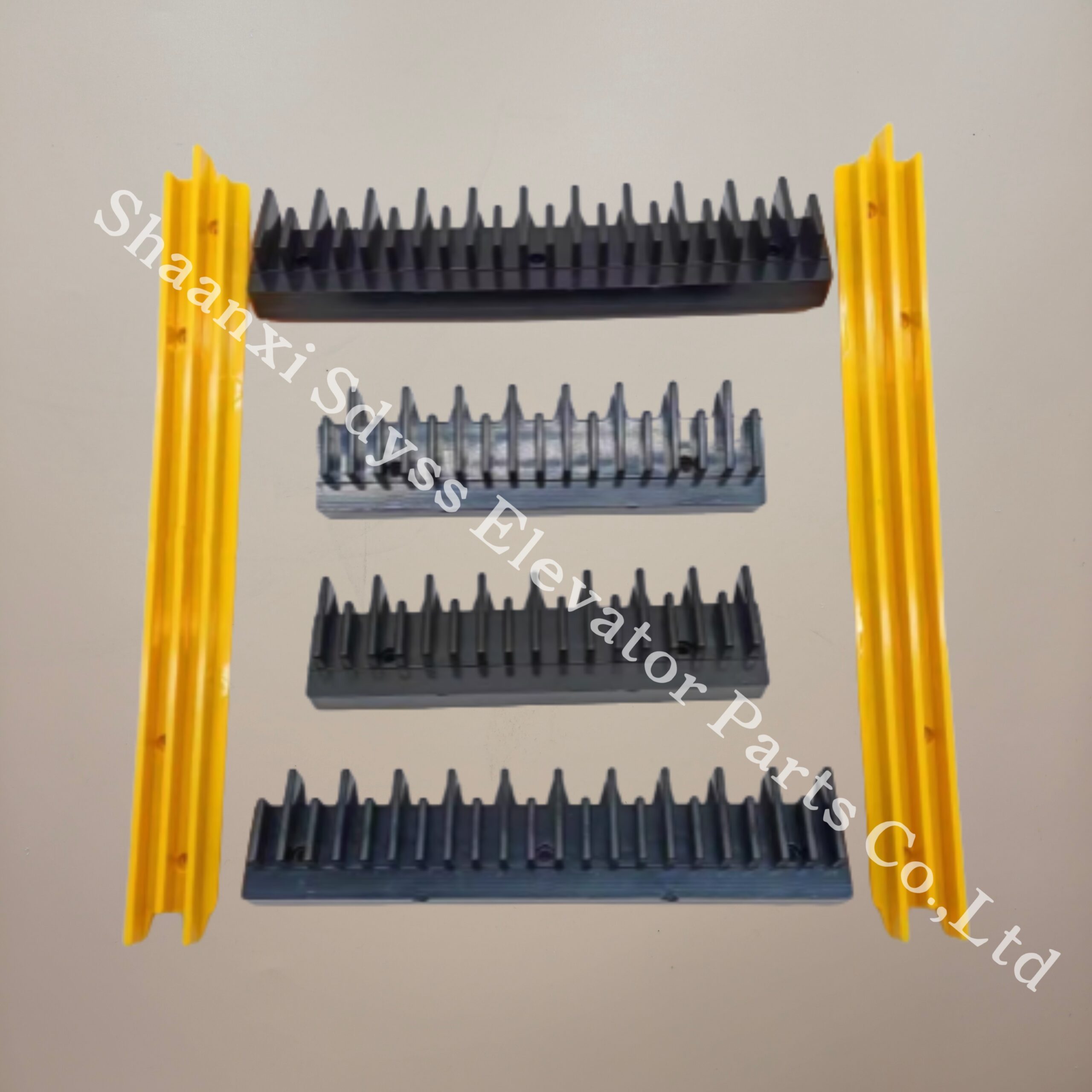Escalator step edge strip BEVG frame, yellow - and - black tread, comb - tooth strip, warning edge strip, 17 - tooth and 22 - tooth, suitable for CONL.