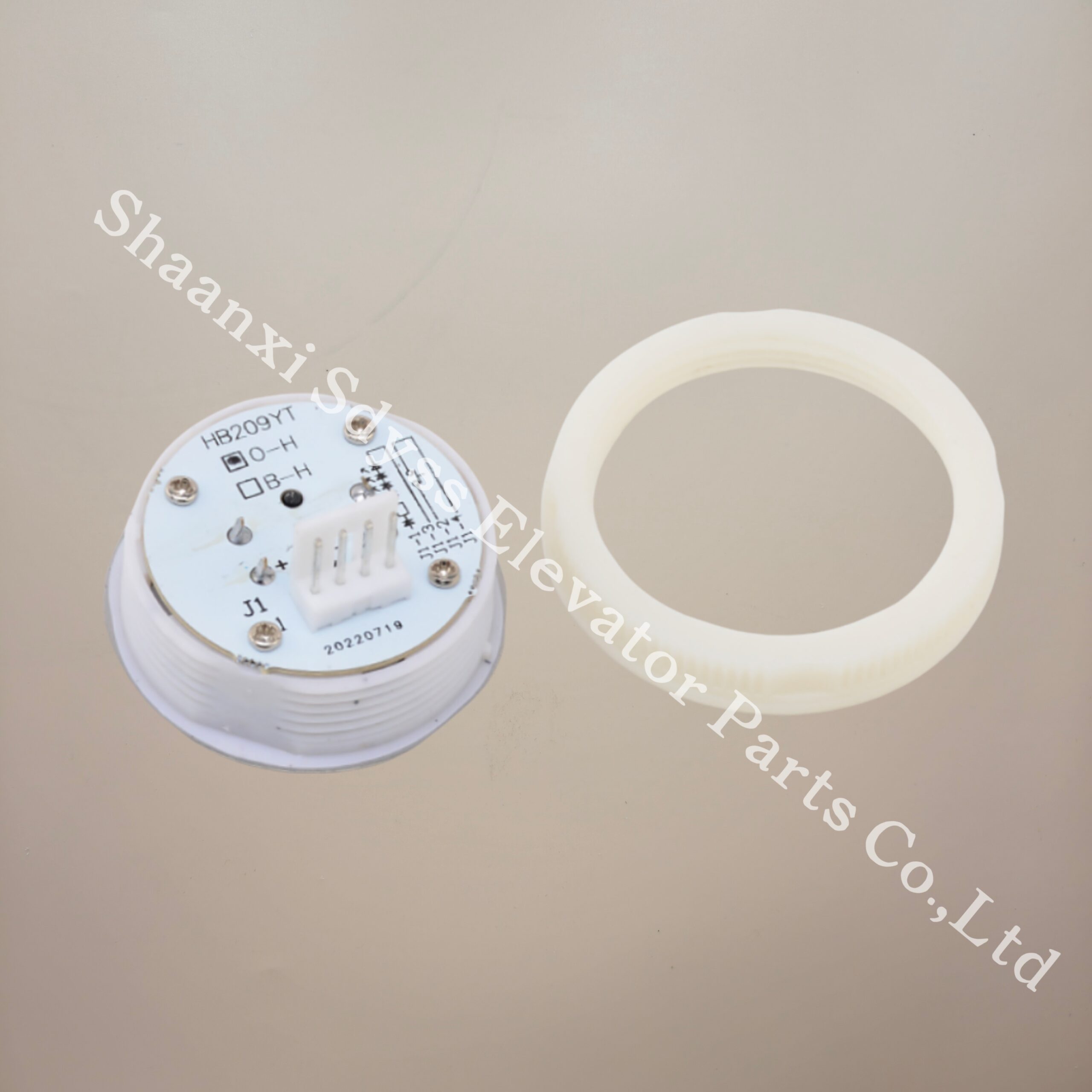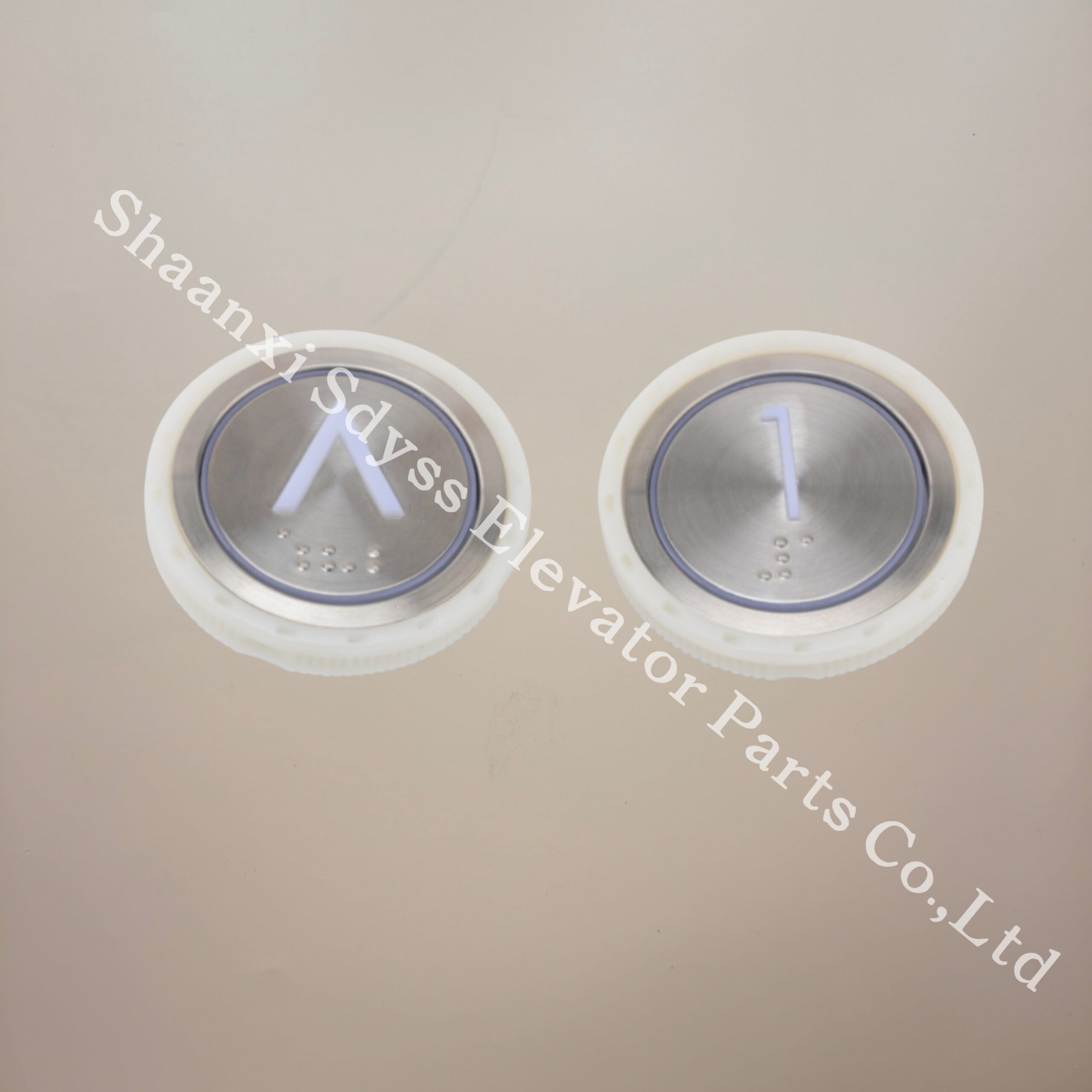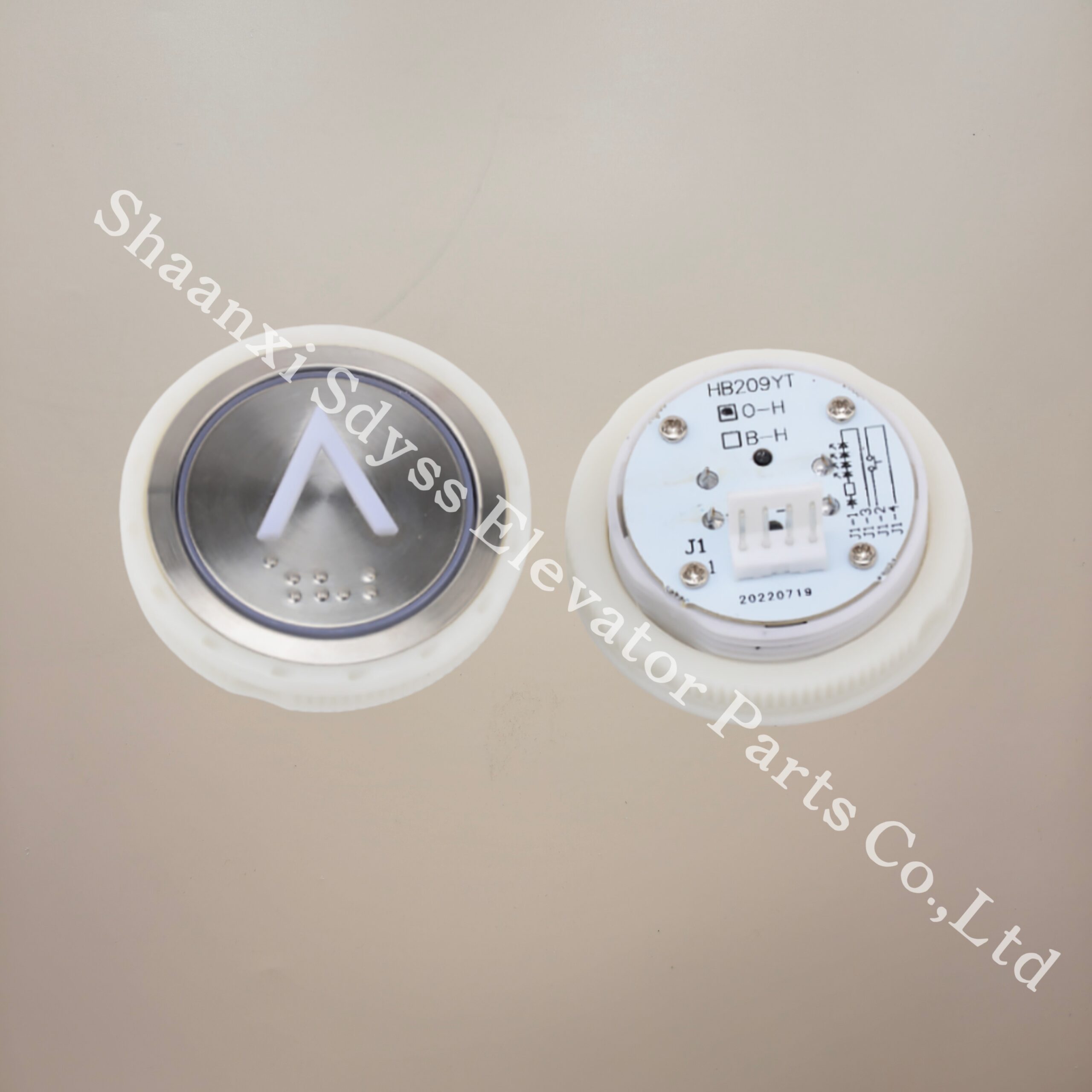 The elevator button HB209YT is a circular external call button with stainless steel raised Braille characters suitable for Yongda Parts