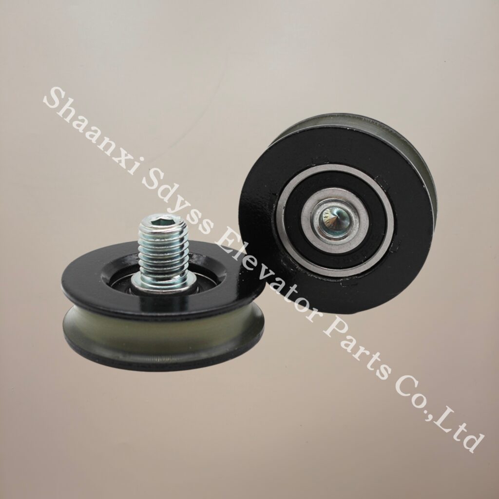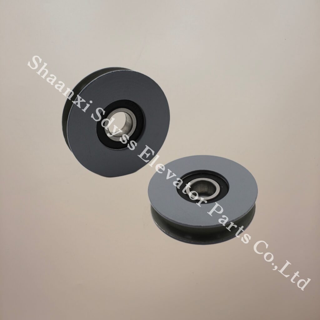 The hoist door wheel on the elevator door in the lobby is 50*14*6201 and the hoist door pulley is 14*6201.